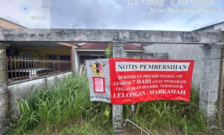 SEREMBAN: Exco Pembangunan Kerajaan Tempatan, Perumahan dan Pengangkutan Negeri Sembilan, J.Arul Kumar menasihatkan pemilik premis kediaman atau perniagaan membersihkan premis dalam tempoh tujuh hari atau berdepan tindakan tegas termasuk proses lelongan mahkamah.