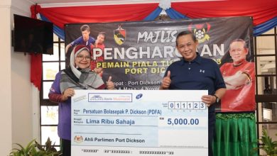 PORT DICKSON: Menteri Besar Negeri Sembilan, YAB Dato’ Seri Aminuddin Harun telah memberi sumbangan sebanyak RM5,000 kepada Port Dickson Football…