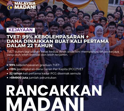 * 99 peratus kebolehpasaran graduan TVET.